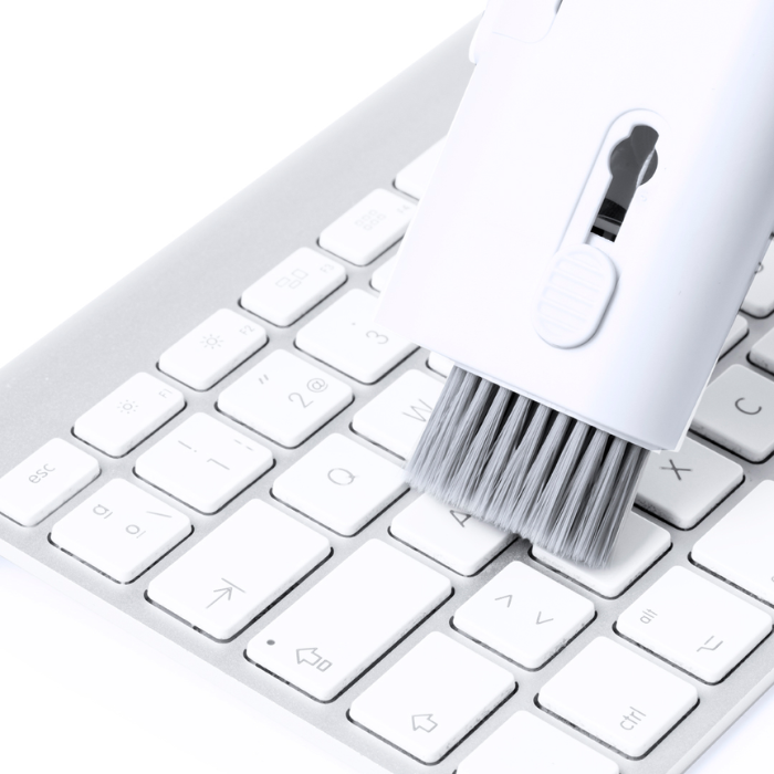 Spazzolina con setole morbide, progettata per rimuovere delicatamente polvere e residui dalla tastiera senza graffiare le superfici.