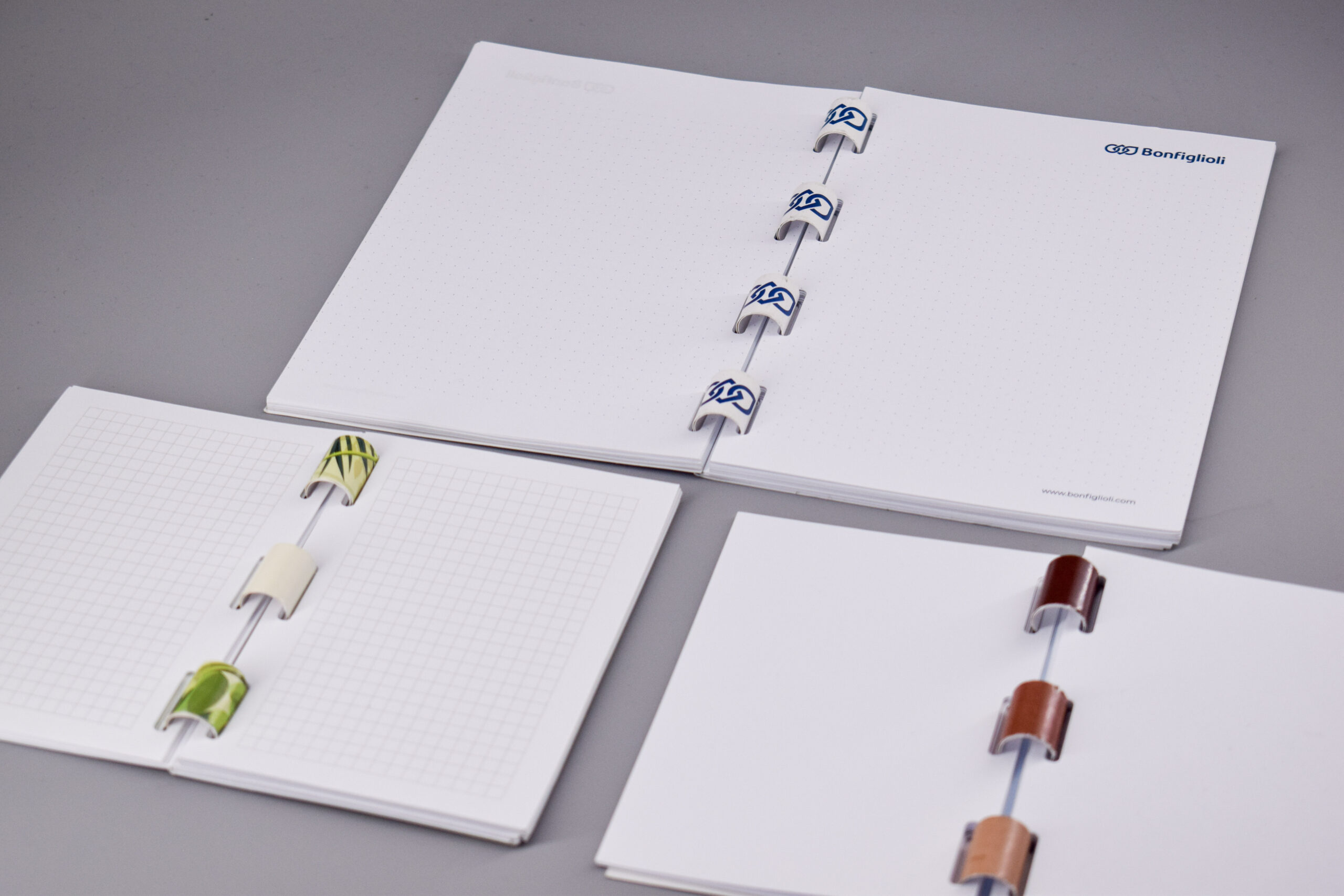 La spirale in cartone brevettata sostituisce le classiche rilegature in metallo o plastica, garantendo praticità e resistenza nel rispetto dell’ambiente. Può essere stampata e personalizzata, diventando parte integrante della comunicazione del brand. Grazie a questa soluzione, il notebook è completamente riciclabile nella carta, senza separare i materiali.